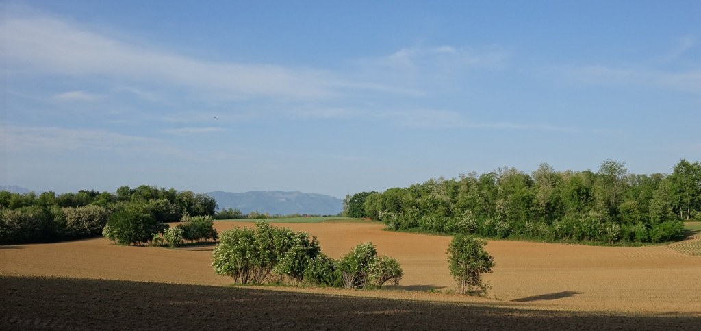 Allora bisogna fermarsi, bearsi di tanta meraviglia. L’impatto con gli alberi è stupefacente. Querce, aceri, castagni, noccioli, ciliegi selvatici, abeti, gelsi e qualche verdissimo e leggiadro tasso che spicca per il suo colore intenso. Le Robinie, unitamente ai sambuchi, sono in fiore ed attirano i primi insetti che bottinano instancabili e frettolosi tutto quanto c’è a disposizione. In basso, in prossimità dei cespugli, ben esposto al sole, qualche piantina fiorita di acetosella, più lontano qualche ceppo isolato di primule gialle e di nontiscordardime! Nella radura, le margherite, in tutto il loro splendore, la fanno da padrone.
