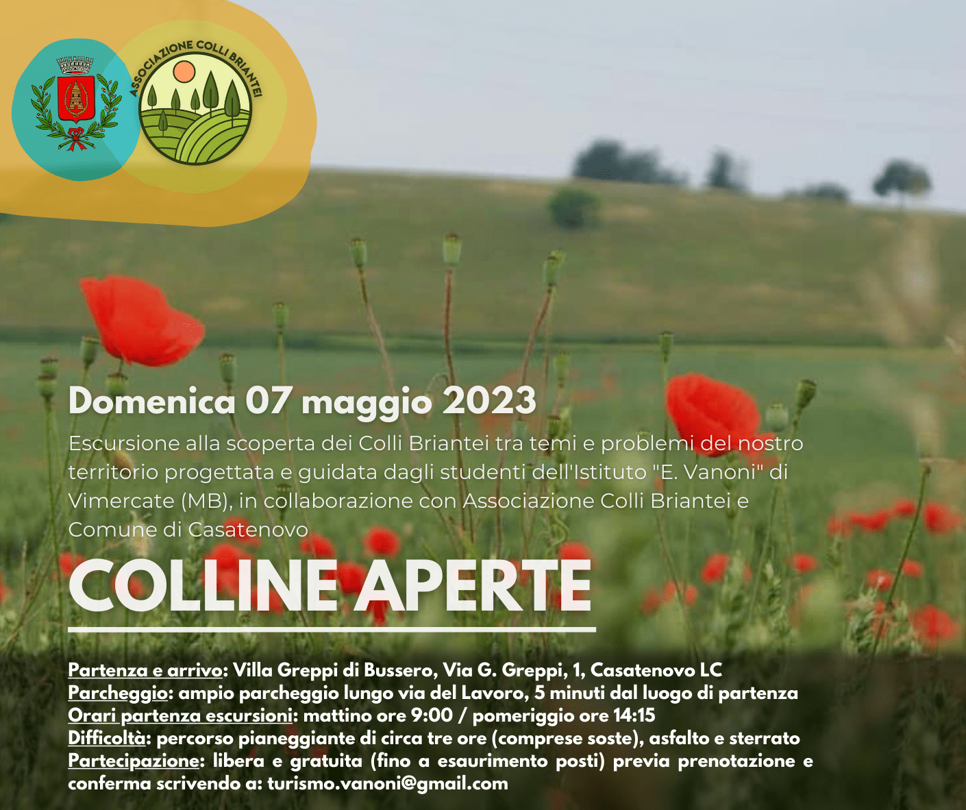 Domenica 7 maggio si è svolta la seconda edizione di “Colline Aperte”, un progetto scolastico dell’Istituto E. Vanoni di Vimercate in collaborazione con Associazione Colli Briantei in cui gli studenti dell’indirizzo turismo, in questo caso la classe 3^D, è stata impegnata nello studio del territorio, nella progettazione e nell’accompagnamento di una visita guidata di alcuni luoghi significativi diContinua a leggere “Colline Aperte 2023 è stata un successo!”